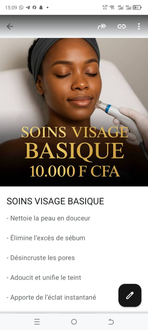 Ce soin comprend un nettoyage en profondeur, une exfoliation douce et une hydratation adaptée à ton type de peau. Il aide à éliminer les impuretés, à raviver l’éclat naturel du visage et à maintenir une peau saine au quotidien.